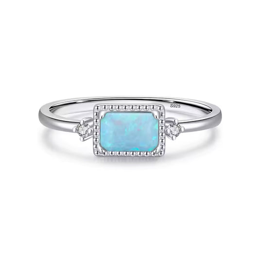 Amara Natural Opal Pure 925 Sterling Silver and 18k Gold Plated Ring with CZ Side Stones
