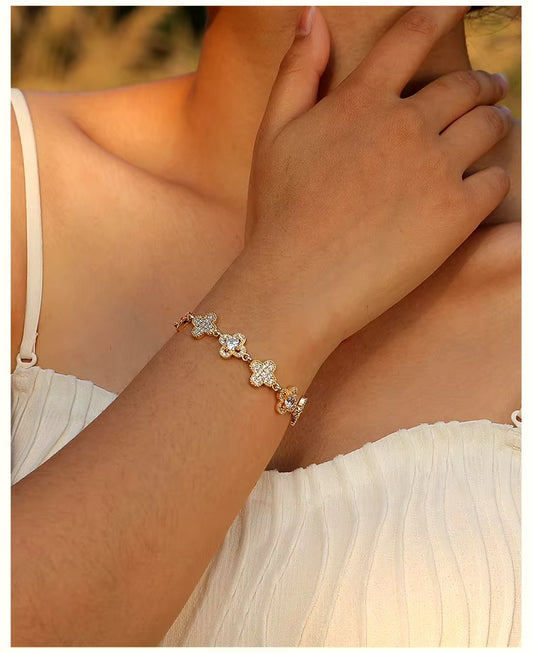 Alaina 18K Gold Plated Stainless Steel Brilliant CZ Clover Link Bracelet